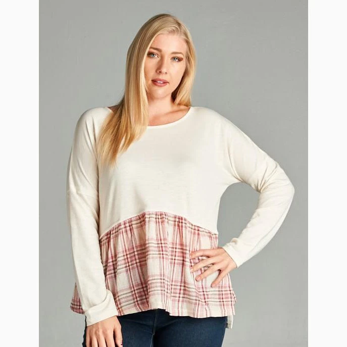 This women’s shirt from BD Collection has a unique peak-a-boo ruffle plaid design in the back! It also has plaid at the bottom of the shirt in the front too! It’s a nice mix of country and casual!